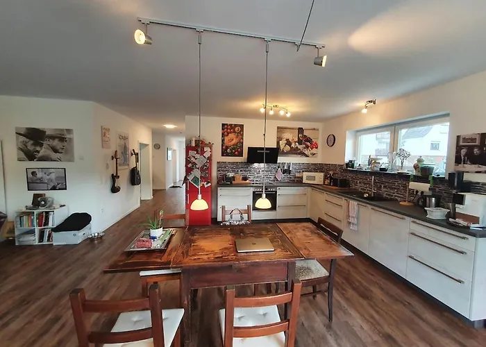 Eine komplette Küche wird im Ferienhaus Pusteblume - Entspannen in Weiterode angeboten. Der nächstgelegene Flughafen ist Kassel-Calden-Flughafen, 85 km vom Apartment. Hier können Gäste verschiedene Aktivitäten genießen, darunter Wandern und Radfahren.